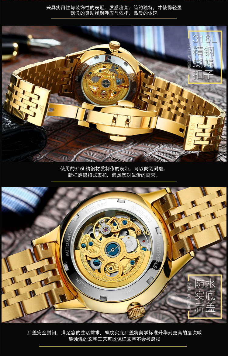 On-time Delivery: If you do not receive your purchase within 60 days, you can ask for a full refund before order completion (when you click "Confirm Order Received" or exceed confirmation timeframe).Big Stock Special reloj hombre Dragon Skeleton Mechanical WristWatch Men Stainless Steel Strap Gold Clock 50m Military Army Waterproof Men watch