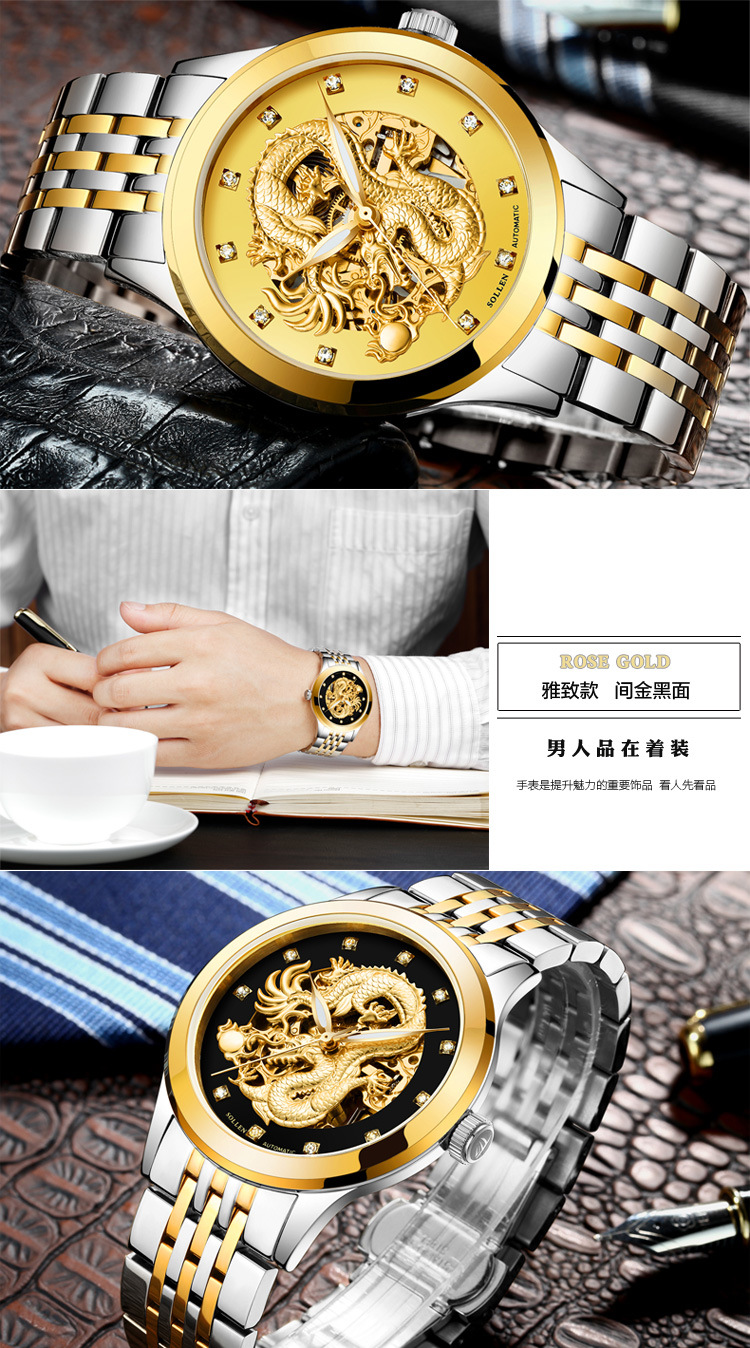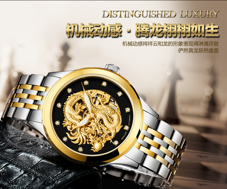 zegarki meskie Men watch Stainless Steel Strap Gold Clock 50m Military Army Waterproof Dragon Skeleton Mechanical WristWatches