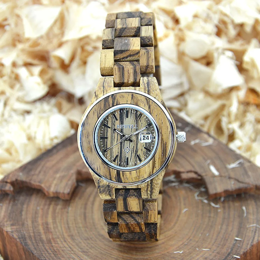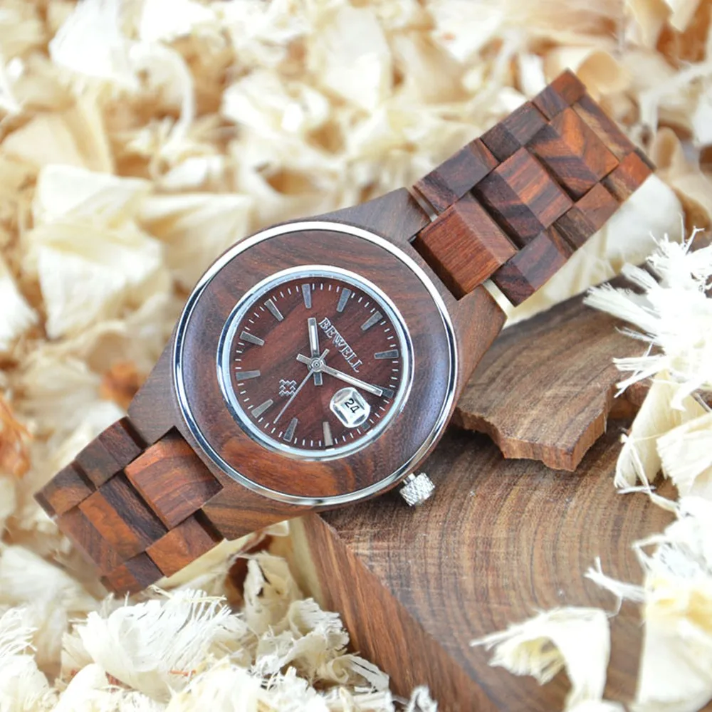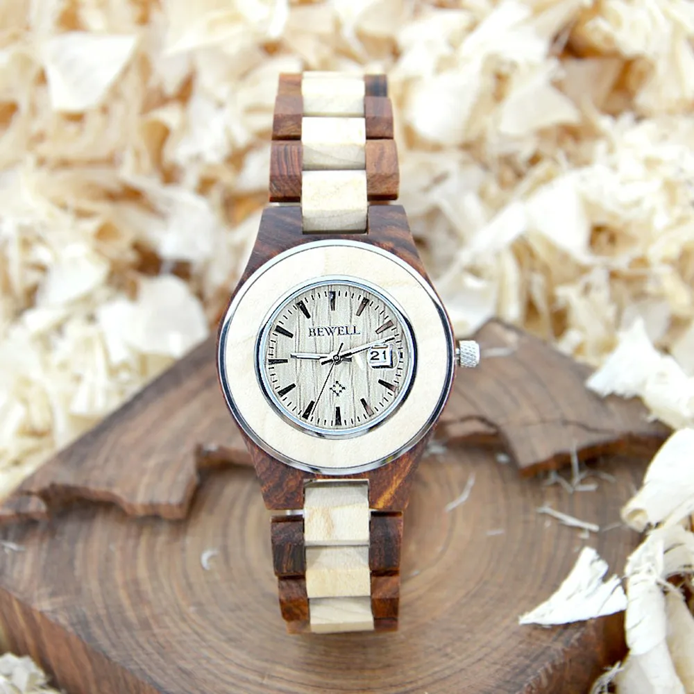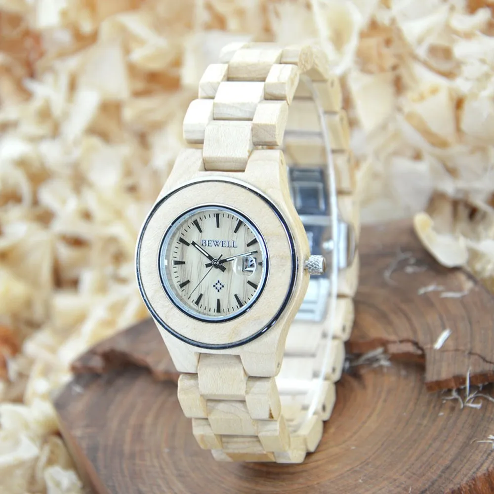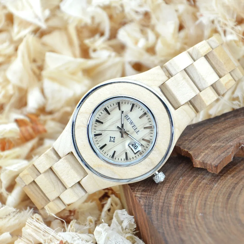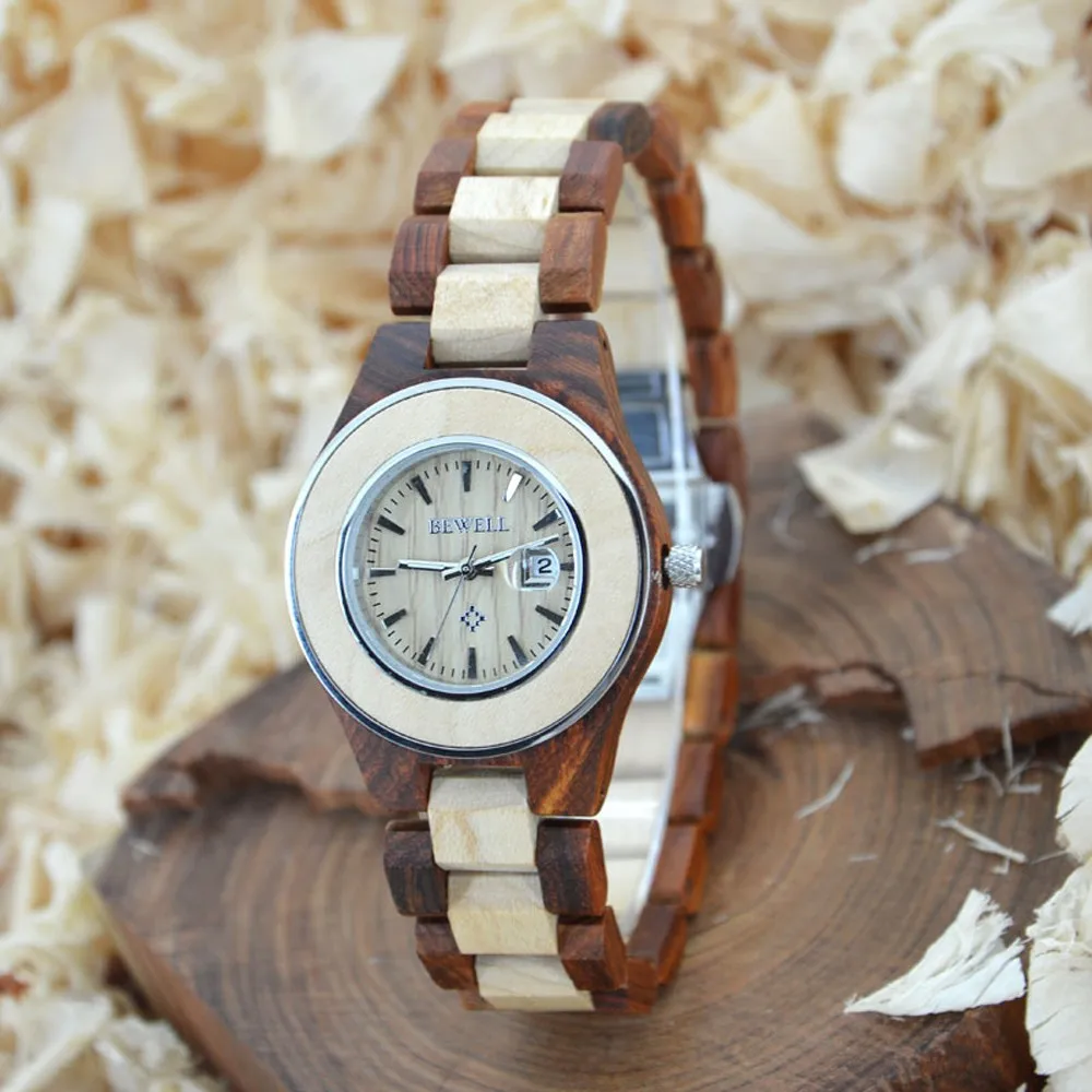 Great Special BEWELL Women's Watch Wooden Watch New Luxury Casual Analog Alloy Quartz Watch with Automatic Dates Summer Jewelry 100AL